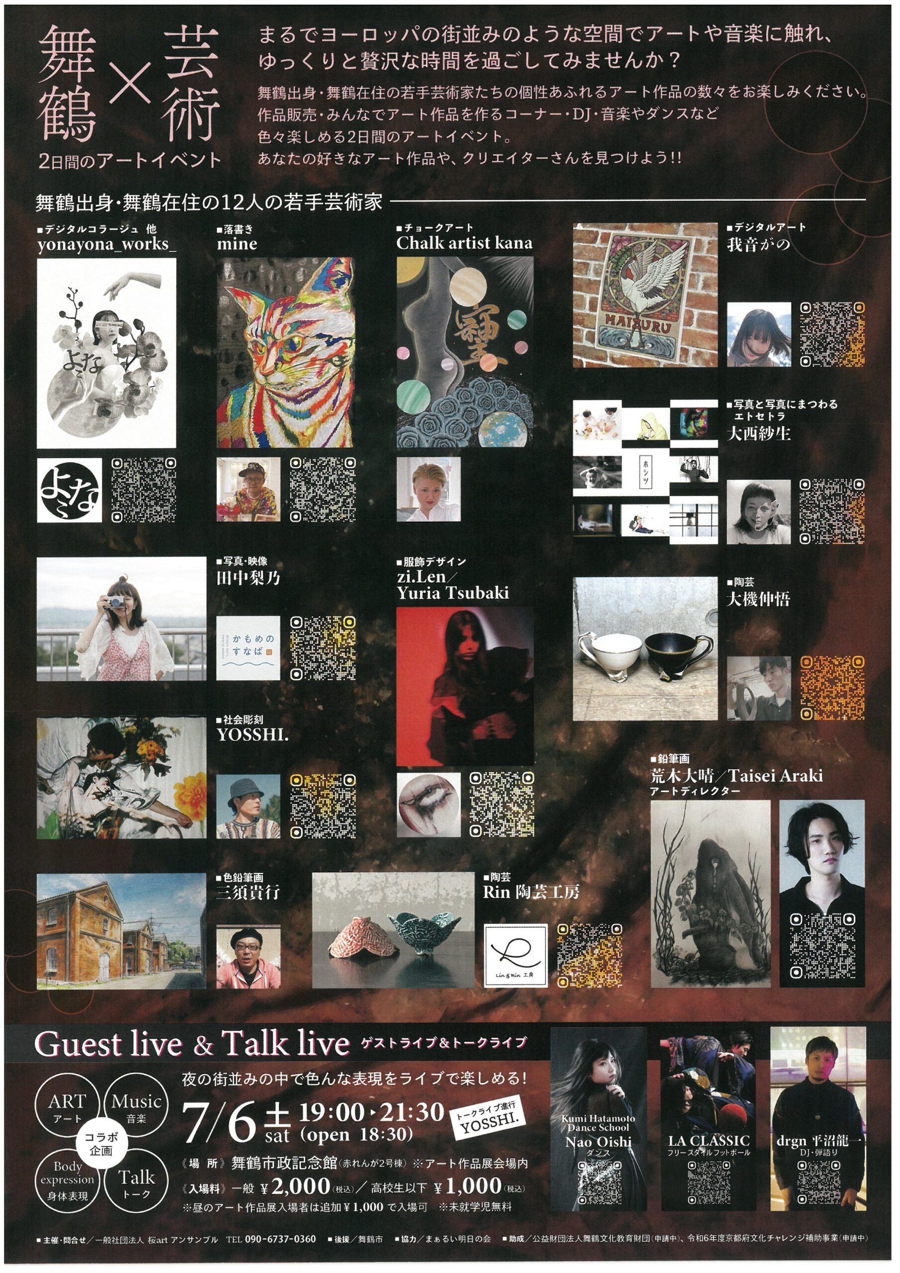 舞鶴の若手芸術家 アート作品展 開催場所赤れんがパーク2号棟 開催日2024/07/06-2024/07/07 開催時間7/6(土):10:00~17:00 7/7(日):10:00~15:00 入場料1,000円 ※高校生以下無料 主催一般社団法人桜artアンサンブル お問い合わせ一般社団法人桜artアンサンブル 090-6737-0360 前の記事 次の記事
