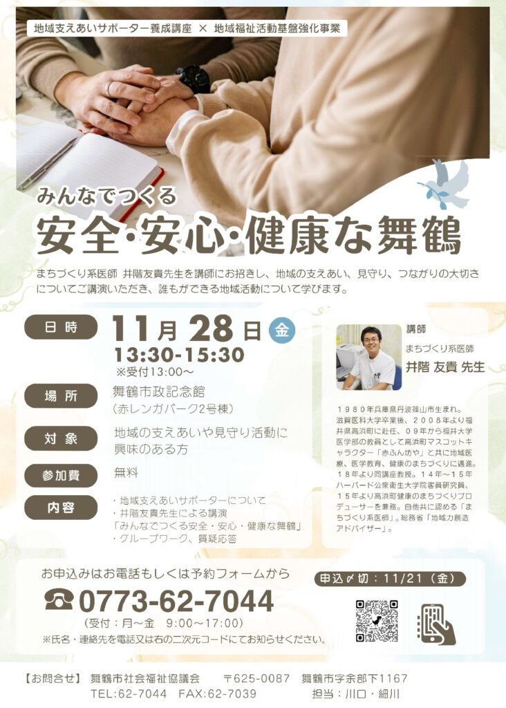 令和7年度地域支えあいセンター養成講座 開催場所赤れんがパーク2号棟 開催日2025/11/28-2025/11/28 開催時間13:30~16:00 入場料無料 主催舞鶴市社会福祉協議会 お問い合わせ0773-62-7044 川口様 前の記事 次の記事